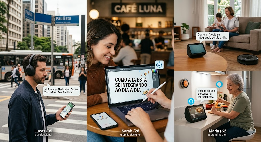 A integração da IA no cotidiano é visível em assistentes virtuais, sistemas de recomendação e automação residencial. No entanto, essa presença crescente também levanta preocupações sobre privacidade e autonomia, à medida que as máquinas assumem papéis mais significativos em nossas vidas.